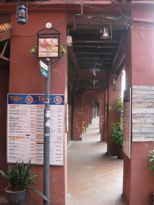 | Another shot of the seemingly endless walkway beneath the buildings. |