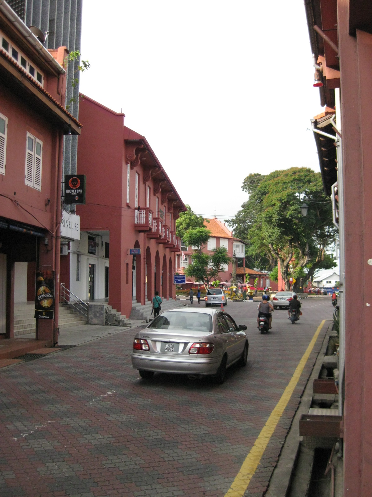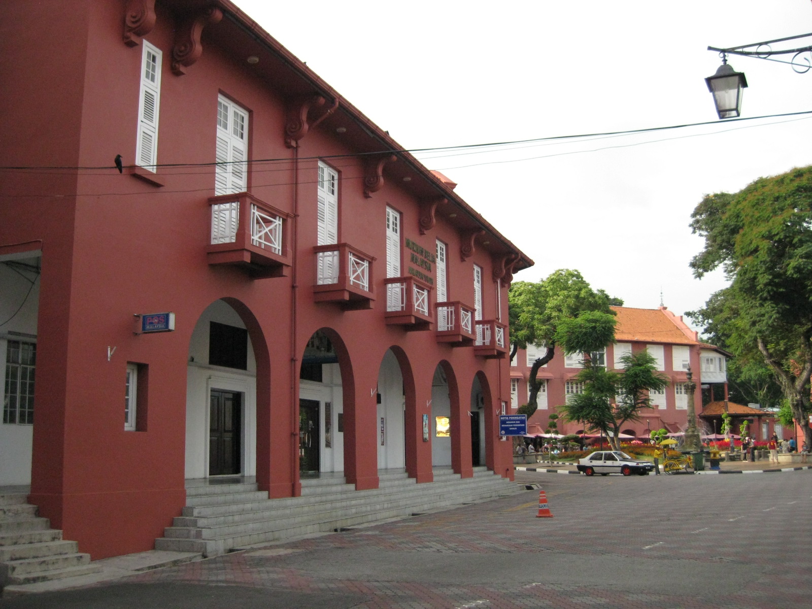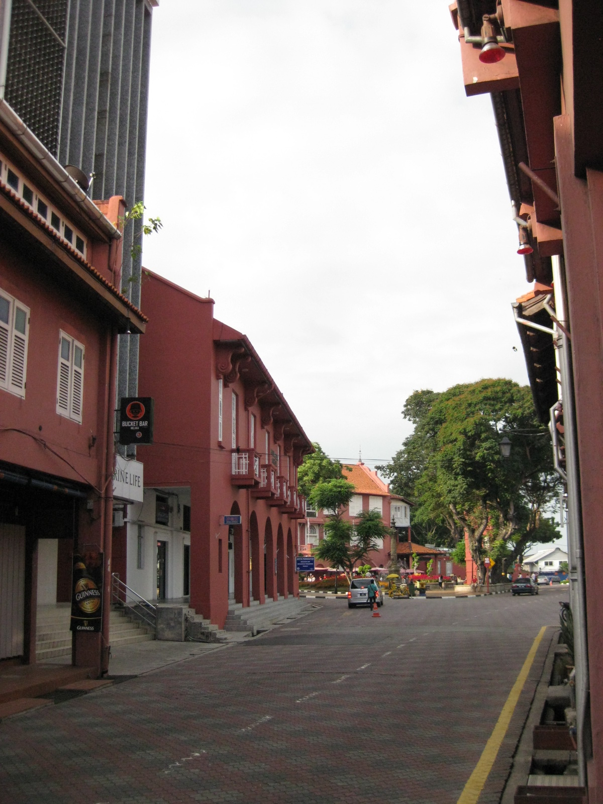 | View towards the plaza – the red building is part of the Christ Church complex but is now home of the Melaka Post Office |