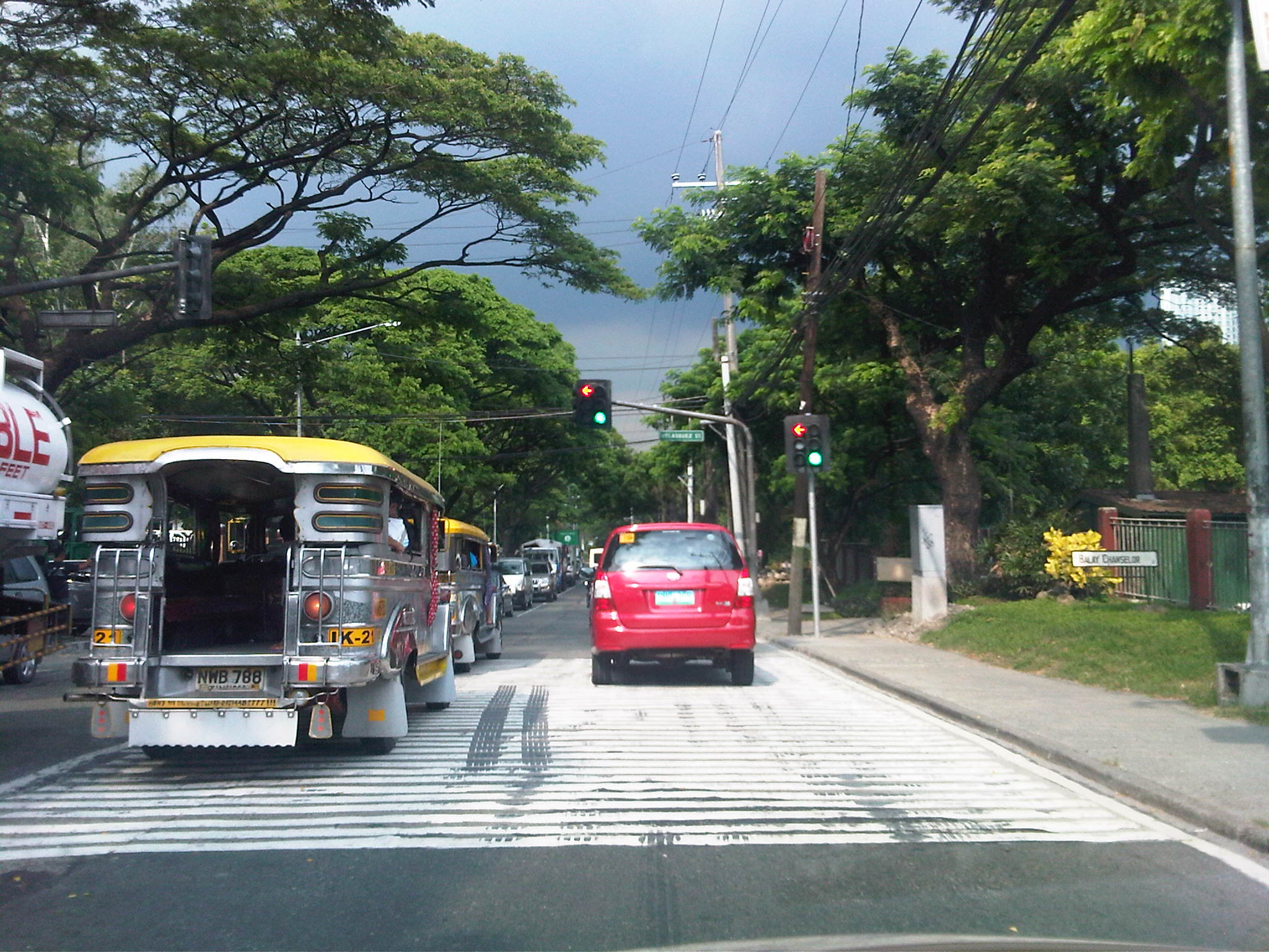 Traffic congestion and traffic signals along the 4-lane C.P. Garcia Avenue in UP Diliman