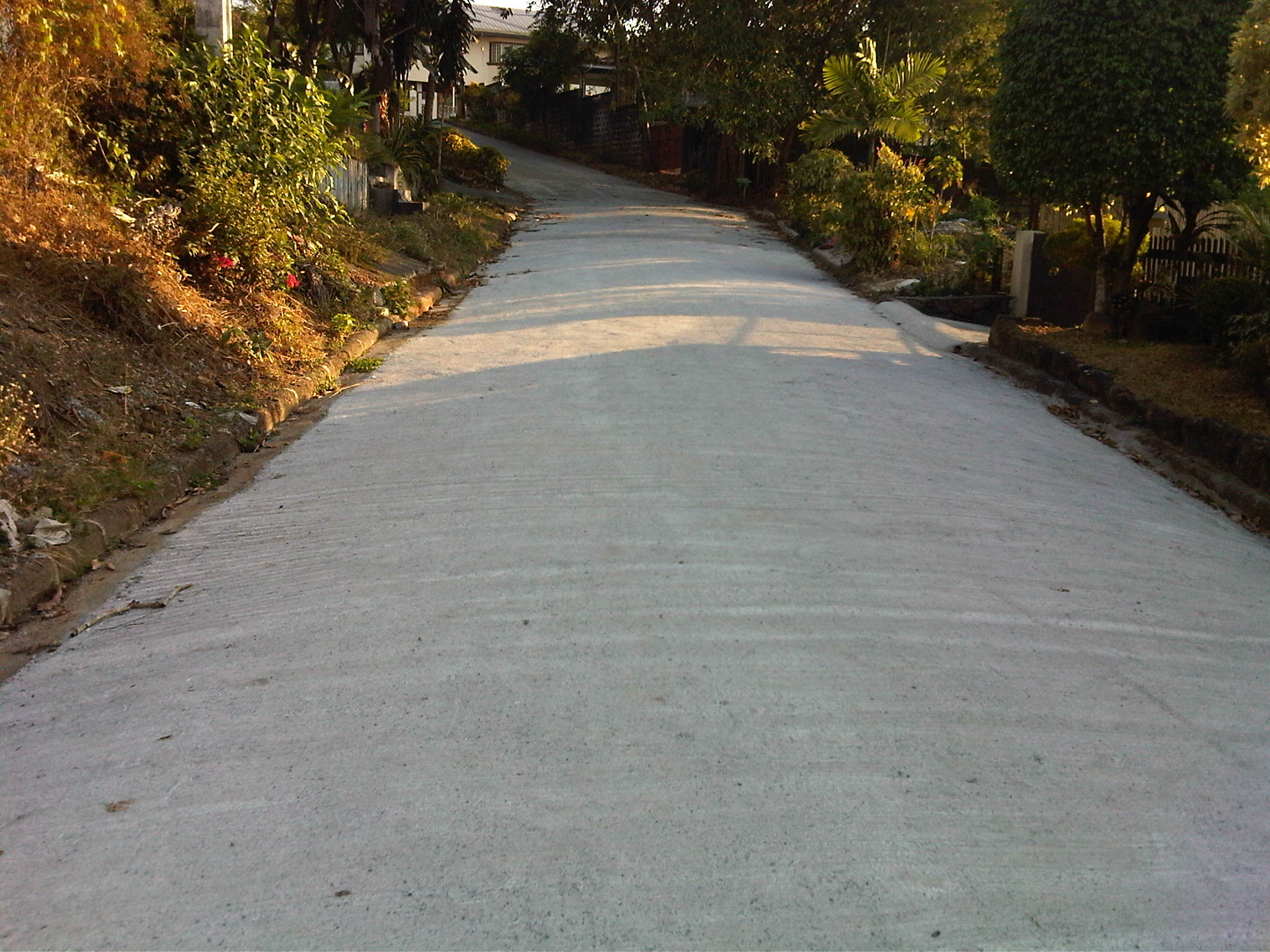 The road section is unpaved but appears to be graded (probably by the tires of all the vehicles using it everyday). The wall on the right is Megawide’s. Megawide is a major contractor.