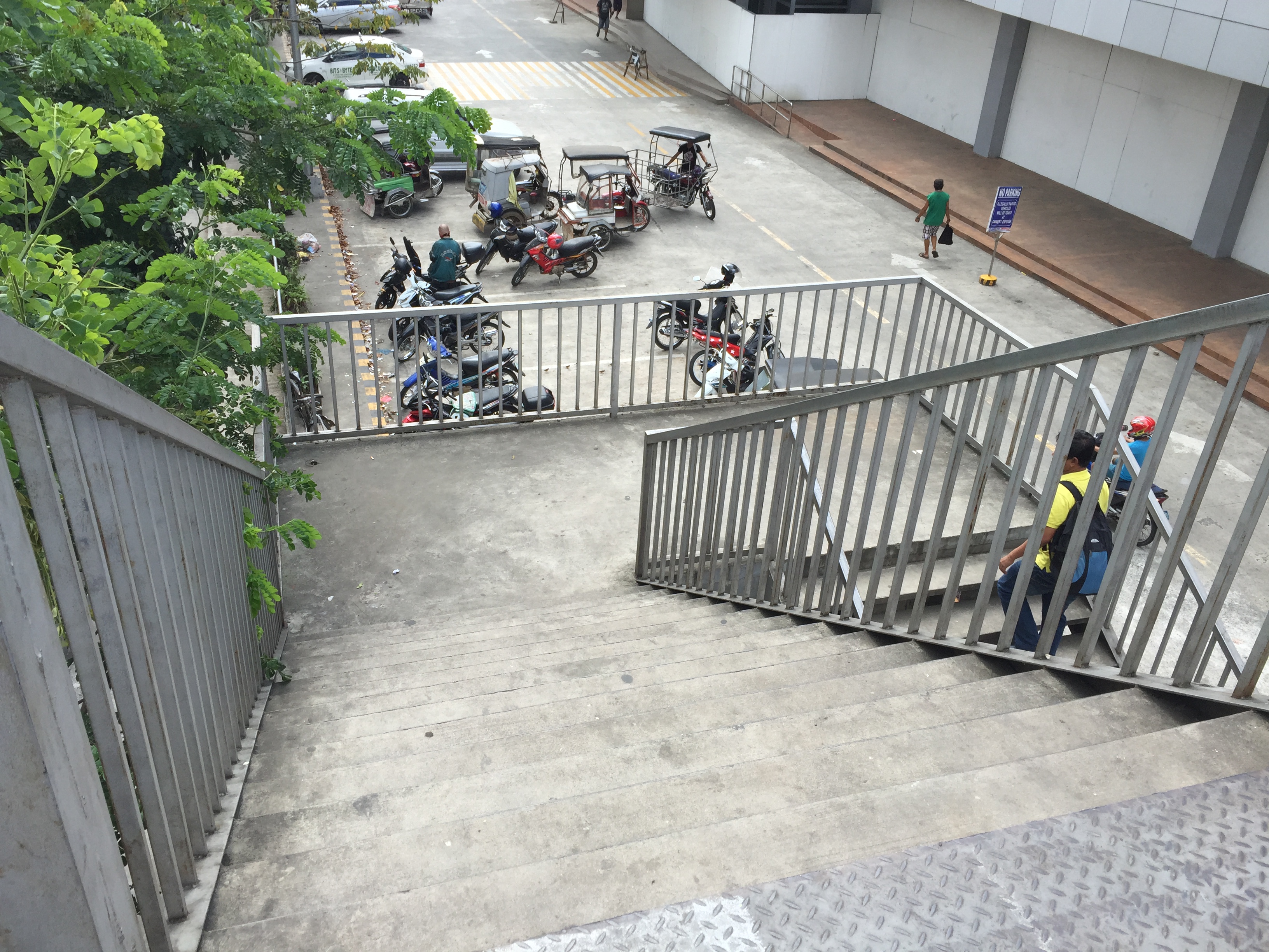 The overpass’ stairs are a bit steep and perhaps not so friendly to senior citizens. There should probably be a ramp for persons with disabilities or for cyclists to use as they carry their bicycles to cross using the overpass.