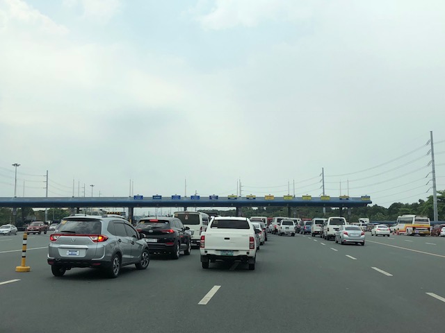 Vehicles queuing at the toll plaza – it can get very congested here during the peak periods and seasons.