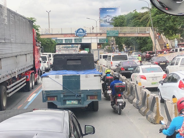 Familiar scene along C-5? What’s new here is that authorities have extended the barriers from the foot of the flyover from BGC and effectively blocked vehicles from merging early with C-5 through traffic.