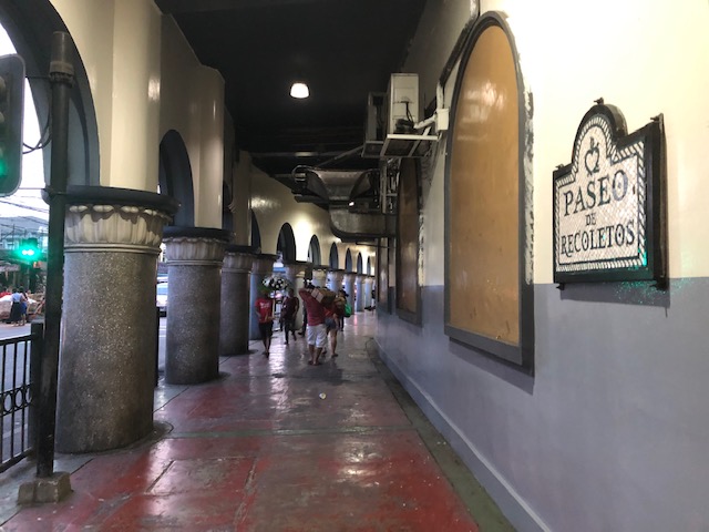 Arcade-type walkway along the perimeter of the University of San Jose Recoletos. This part is the Paseo de Recoletos along Magallanes Street and across from the Freedom Park Market. The other is Paseo de San Jose but is not wholly covered. The latter is along P. Lopez Street.