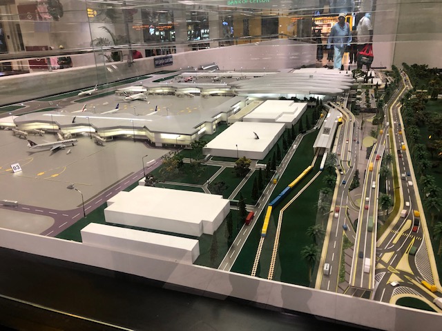 Scale model of the airport development project with this angle showing the terminal and land transport interface