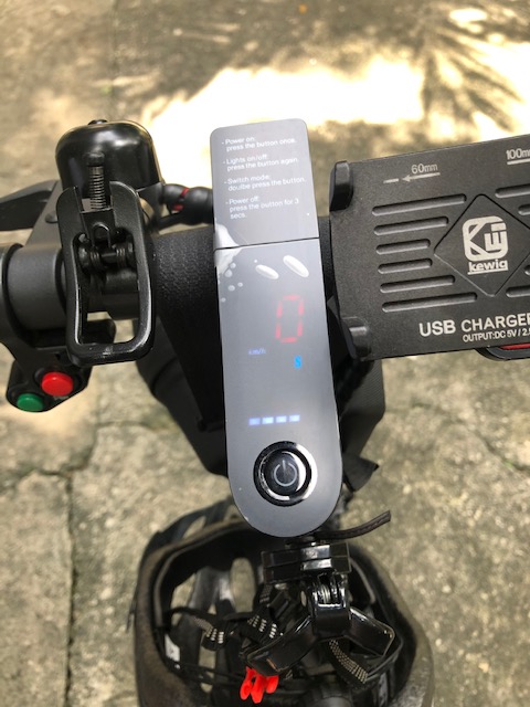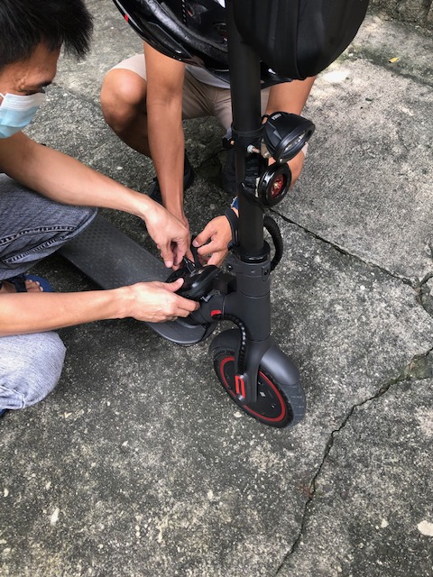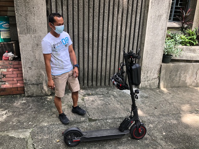 I took the following photos while conversing with one of the project research staff at our center who uses an electric PMD for his commute between UP and his home in the Cubao district. He related that he alternates between this and his motorcycle. When asked if he felt safe using the PMD, he said it was the same as when he rides a motorcycle as he also wears a helmet and protective pads when using the PMD.