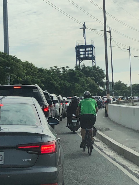 The label or title has double meaning. Conspicuous in the photo is the image of the Crucifixion atop what is a small shrine along Circumferential Road 5 across and facing SM Aura. The image appears to be a reminder or symbol of suffering but with the superimposed image of traffic congestion, alludes to the suffering endured by motorists on a daily basis. The “kaligtasan” or salvation part of the photo is in the form of the cyclist or the bicycle (I really have to explain that, right?) that offers an alternative or even hope for those who seek it. One thing the pandemic has taught us is that active transport in the form of walking or cycling is part of the solution to the transport problems we are experiencing. Public transport, of course, is touted as an ultimate solution but the reforms and infrastructure required are and will take time to implement, and these are already encountering problems leading to further delays or ineffectiveness.