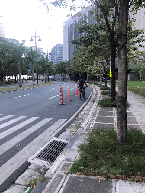 During Saturday and Sunday mornings, the bollards are moved to the sidewalk as many cyclists use 38th Street for laps. I wonder if the bike lanes will be retained once the schools resume face-to-face classes. That would mean a tremendous number of private vehicles generated by the international schools and colleges here. My opinion is that the bike lanes need to be retained as it is a step in the right direction for transport and encourages people to cycle or take PMDs to work and perhaps to school. These and others like it in Metro Manila and around the country need to be sustained and further developed to be attractive and viable to many seeking another option for mobility and their regular commutes.