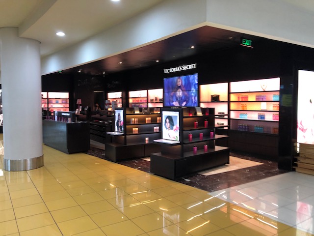 The Victoria’s Secret shop is open. So is the Bath & Body Works store across from it.