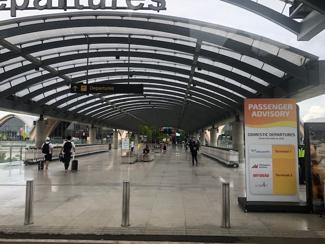The view upon alighting from the vehicle that took us to the airport – note the advisory stating Cebu Pacific departures are via the old Terminal 1.