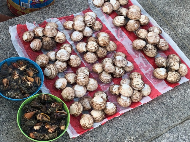 Vendors selling shellfish – suddenly I recalled the tongue twister: “She sells sea shells by the sea shore.”