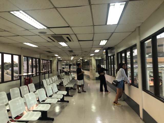 Stairs lead to the second level of the building for those who are waiting for arriving passengers (e.g., fetchers including relatives and friends).