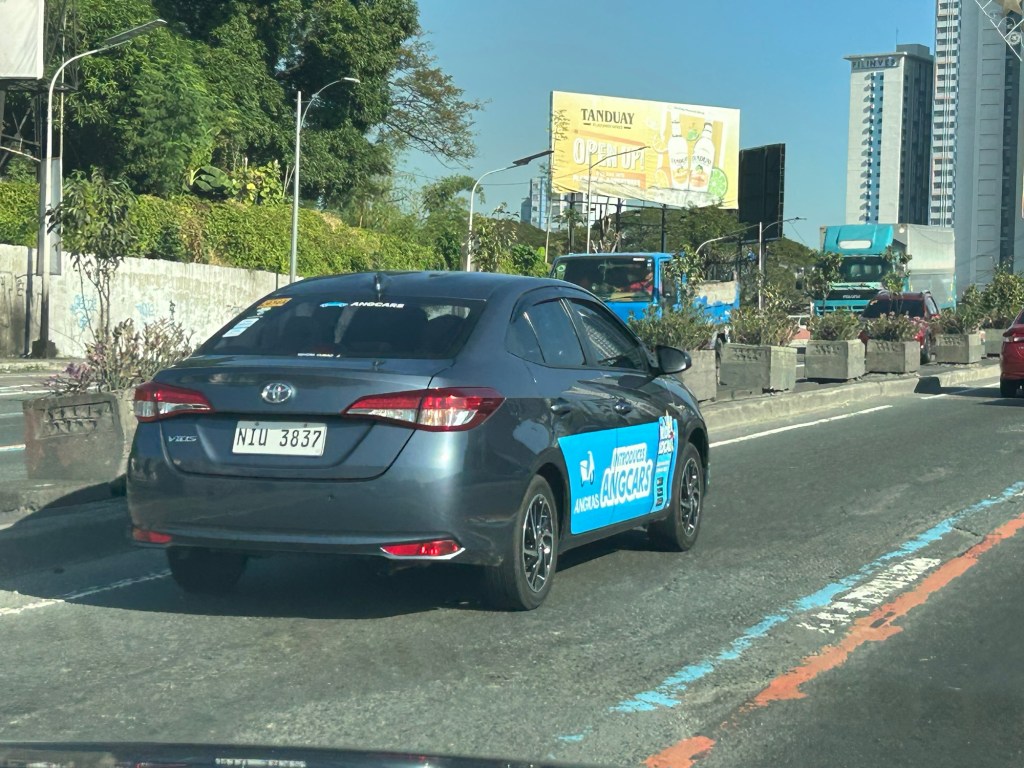 Last week, we saw this car with a familiar brand on its side. Sporting the colors and logo of MC taxi leader Angkas, they coined a brand for their cars – Angcars.
