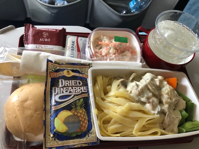 I opted for the chicken and pasta dish. The meal also included dried pineapple that you can have as dessert or snack (for later during the flight).