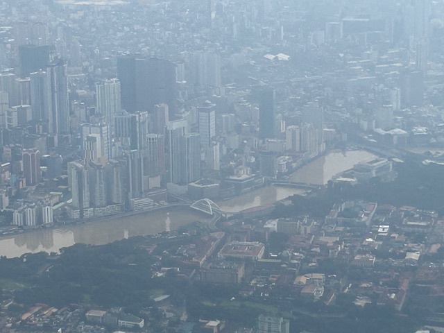 The view as we lifted off from NAIA shows SM’s reclamation project across from the MOA complex.