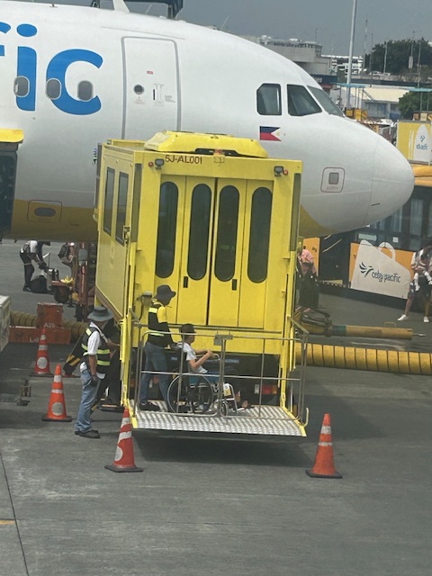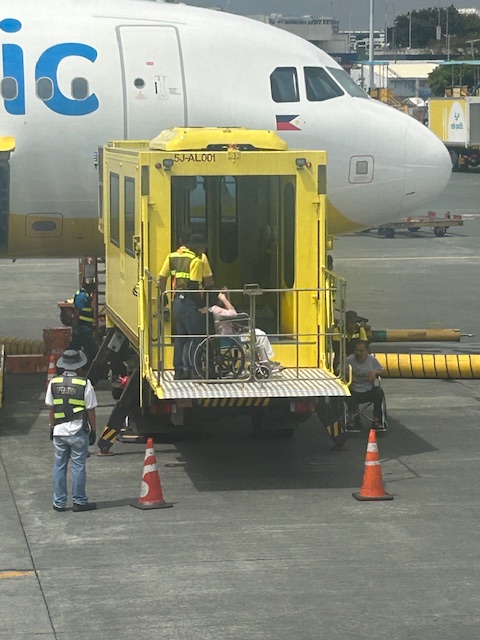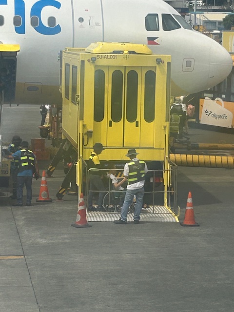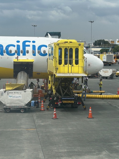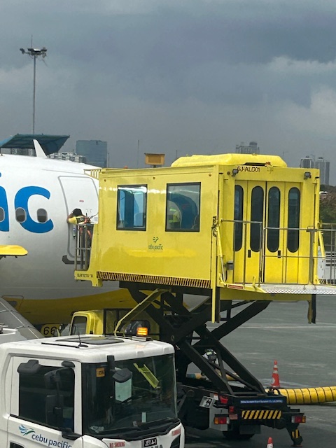 This was the first time I saw this equipment at an airport. I wonder if there are similar elevators at the other NAIA terminals or in other Philippine airports where there are no tubes or bridges connecting the aircraft to the terminal buildings.