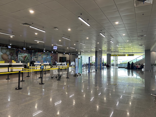 The terminal features a spacious check-in area.