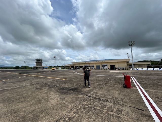 The airport terminal and control tower as viewed upon our deplaning