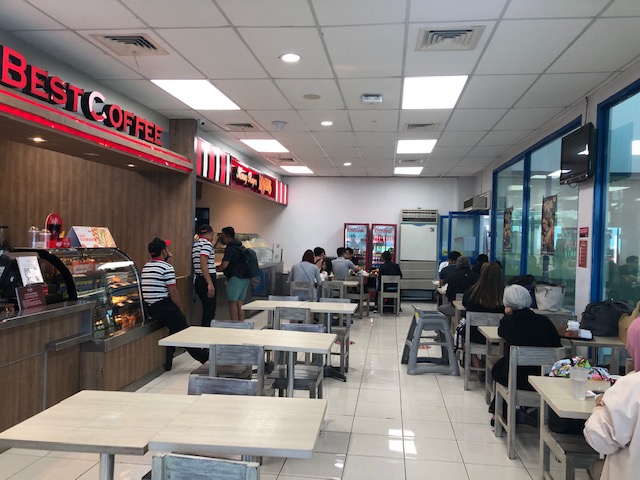 After the final security check and entering the pre-departure lounge, you can proceed to the food court where you have a choice between Seattle’s Best Coffee and Kenny Rogers.