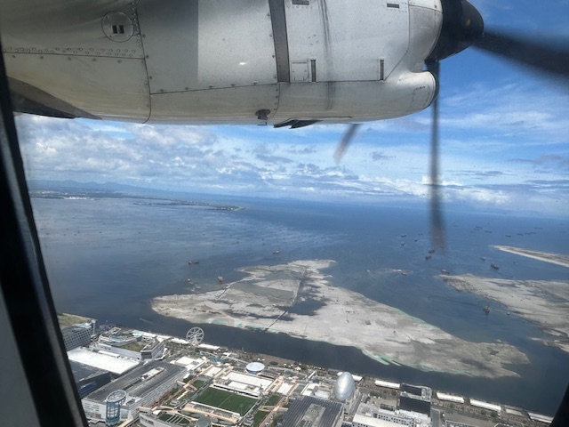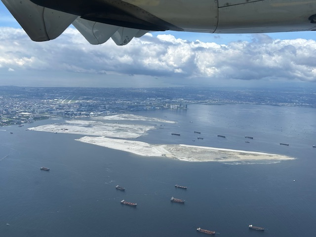 The view as we lifted off from NAIA shows SM’s reclamation project across from the MOA complex.