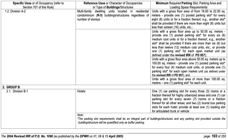 Indeed, the building code and local government provisions for minimum numbers of parking spaces for various buildings translate into more expensive units for prospective residents or lessees. Perhaps someone should be collecting and analyzing the data on buildings such as high-rise residential and commercial developments? This is to have the numbers for an objective and factual discussion about parking minimums for these types of development. Here is an excerpt from the National Building Code showing examples of minimum parking requirements for residential buildings: