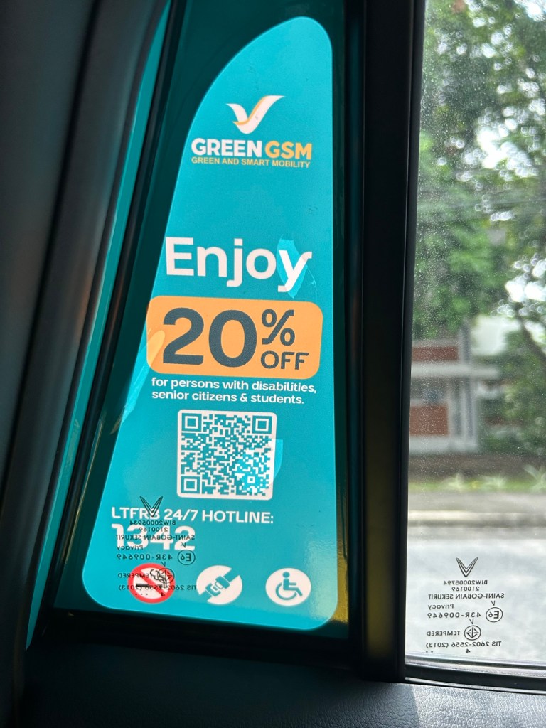 I have a couple of students whose research topic is on Green GSM Taxis characteristics. We’ll soon find out more of their operating characteristics and how their attributes compare with those of TNVS or ride-hailing services like Grab and In Drive.