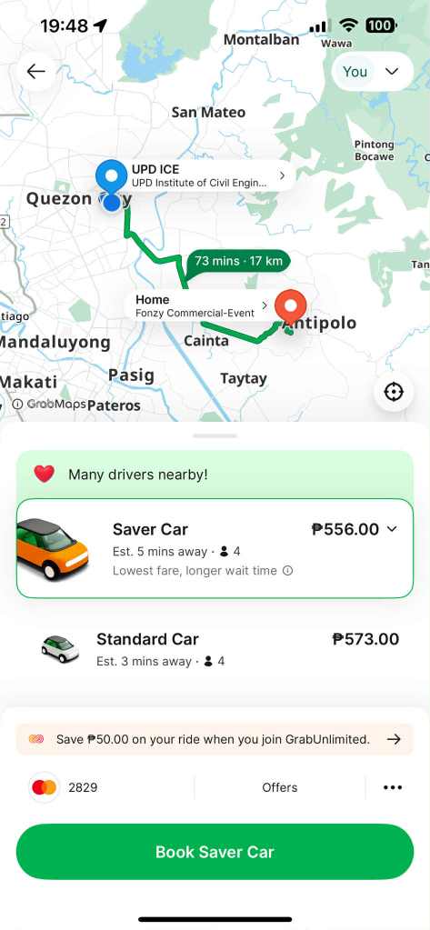 And so I downloaded the app and finally had an opportunity to try them as I traveled between UP Diliman and Ortigas Center. I was able to book a ride immediately and it was less expensive compared to Grab. But that was just one booking so I had to try it another time. On my return trip, the same happened and I was able to get the same result with a cheaper booking than Grab.