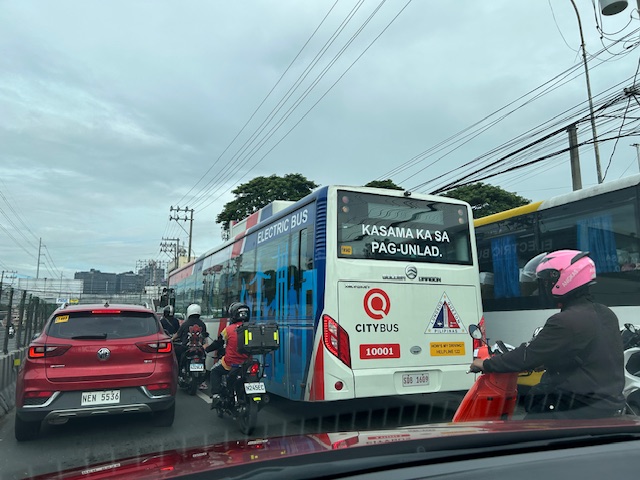 While Quezon City rolled out its new electric buses, I have not seen them along my typical commutes that takes me to C5, particularly and mainly along Katipunan Avenue. Most of these buses are probably deployed along the other routes served by the Q City buses. So I took this snapshot of one that I saw not in QC but along Ortigas Avenue Extension in Pasig City. Maybe it was en route to the end station/terminal at Bridgetown, which is at its border with Pasig?