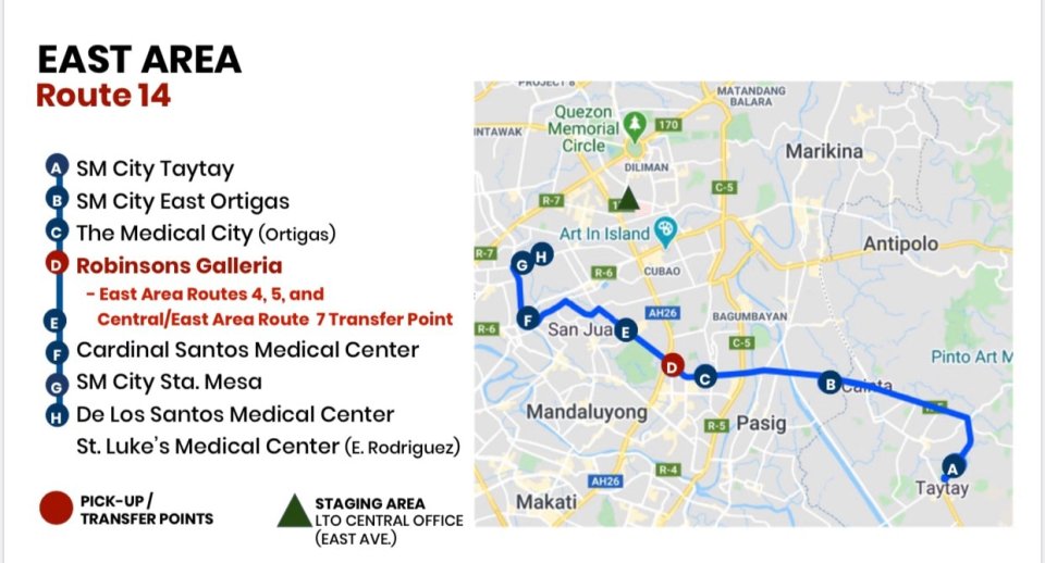 Jeepney station for eastbound PUJs including those bound for Cainta, Taytay, Angono and Binangonan via Felix Avenue (formerly Imelda Avenue) and Cainta Junction