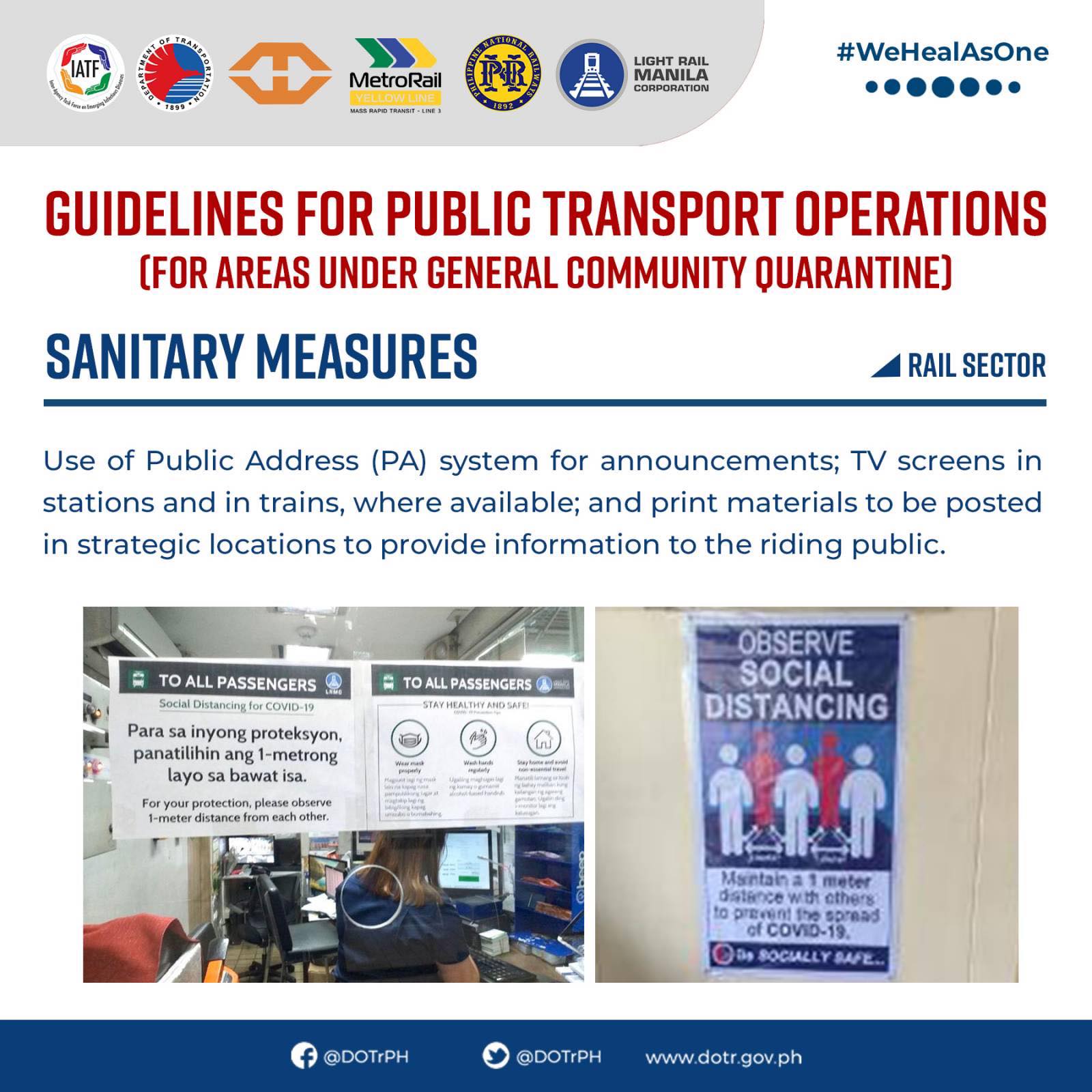 On the DOTr GCQ Guidelines for Public Transport Operations – Rail Sector