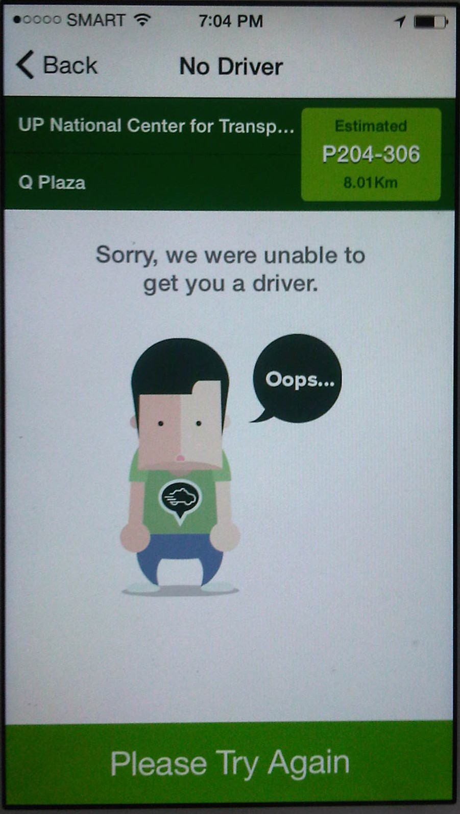 Here are a few screen grabs from a booking we made last month after having some difficulty getting a ride out of UP Diliman in Quezon City.