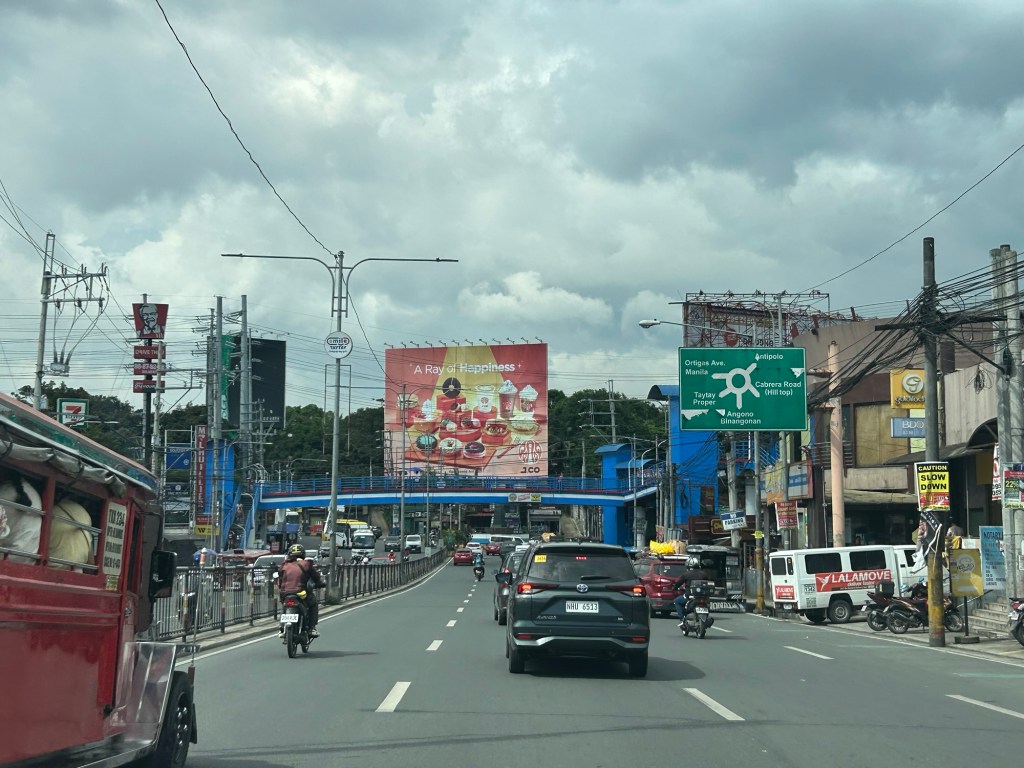 This is the view from the queue approaching the intersection of TOCS Avenue with Marcos Highway from the eastbound side of the highway. Note that traffic is not flowing from the junction along the eastbound (Metro Manila bound) side of the highway.
