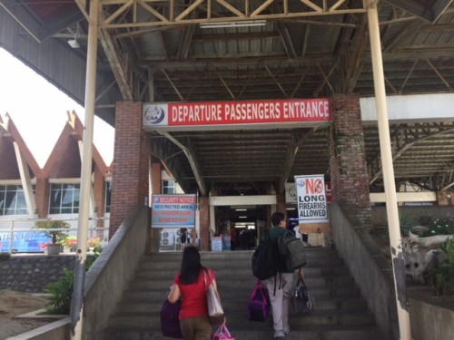 Arriving passengers cross the driveway to meet up with relatives, friends or whoever’s picking them up. Some proceed to get a tricycle to the city.