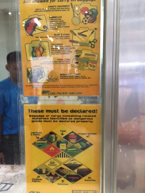 Posted on the windows at the check-in counters are information on items to be declared and those prohibited or not allowed on carry-on (hand carried) luggage.