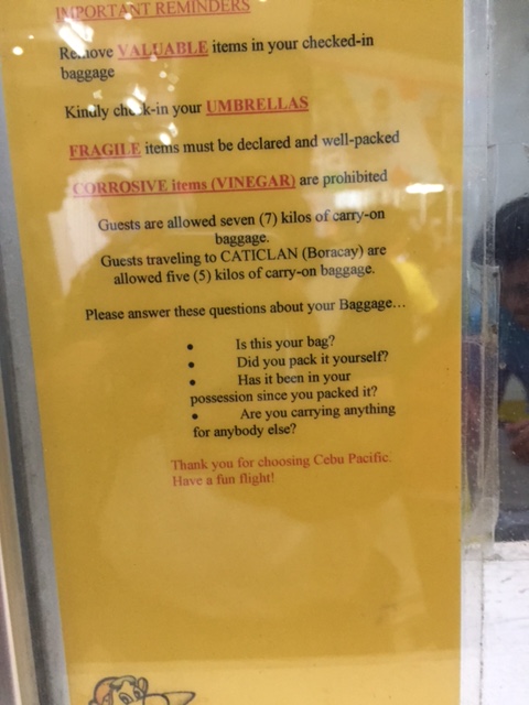 Here’s another sign pertaining to valuable, fragile and prohibited items for checked-in and carry on luggage