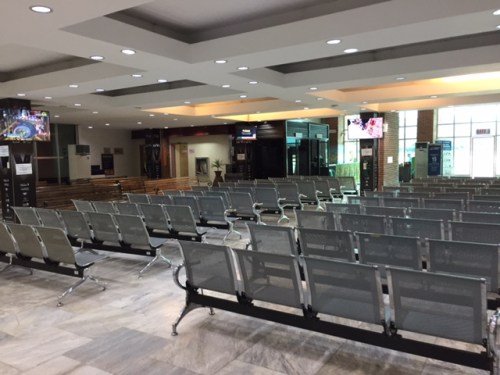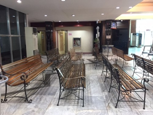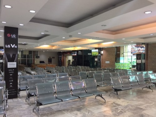 At the back are wood and steel benches typical of what you might find in parks rather than in an airport terminal. Perhaps these were placed here to provide more seats to waiting passengers?