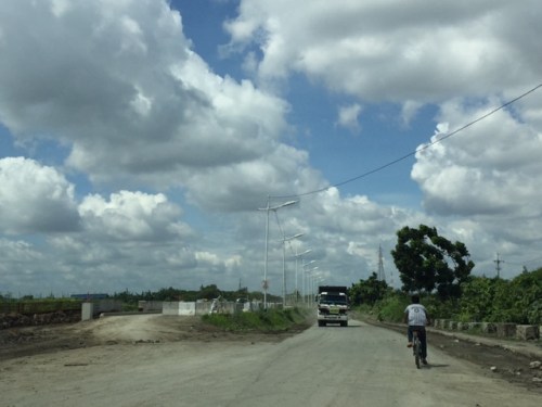 It seems late but there seems to be no really significant changes to the state of Circumferential Road 6 as the rains seem to have slowed down work on sections of the highway. We took these photos 3 weeks ago showing the nice 2-lane/2-way section on the side of the Laguna de Bay that’s been opened to general traffic. Previously, most vehicles had to use the beat-up, crater-plagued older section of what was a dike road. We were heading to SLEX via Bicutan so we were able to take a lot of photos for the entire stretch of C-6. I won’t be annotating all the photos anymore but suffice it to say that the series starts just after the Napindan Bridge in Pasig and ends prior to Taguig City’s bayside park at Lower Bicutan. Vehicles bound for C-5 or BGC via Ruhale Street should get off the newer section and negotiate a short but very bumpy road that’s not a good experience if you’re using a car. Just after the Ruhale “exit” all vehicles would have to return to the old road and have to be patient with the bad conditions of the pavement on both sides of the road.