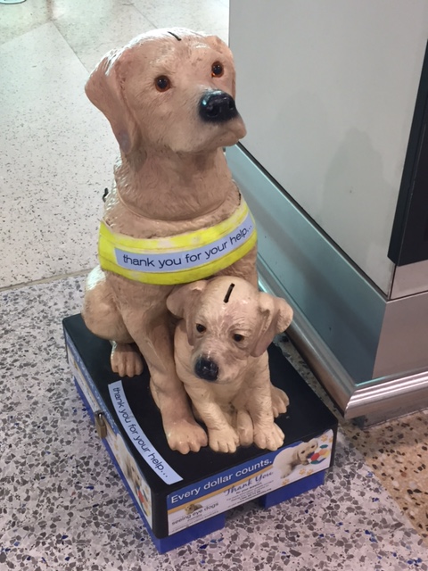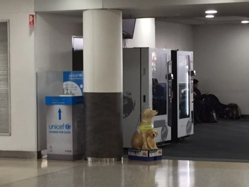 Vending machines, a donation box for UNICEF and another one of those mother dog and puppy devices for donations for seeing eye dogs.