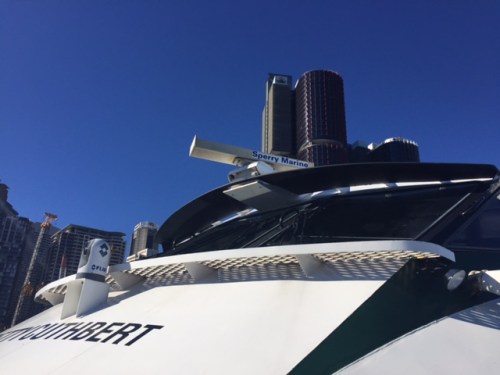 A view of the bridge and showing the name of the ferry. We discovered that each ferry was named after a prominent female sports figure.