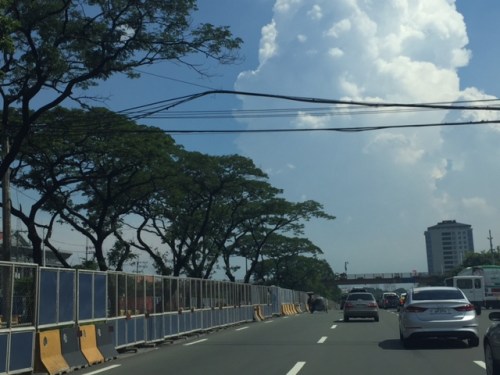 MRT Line 7 worksite along the Commonwealth Avenue median is secured by lines of barriers cum fences on either side of the median.