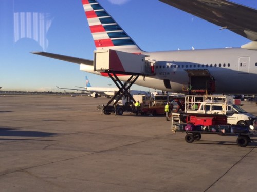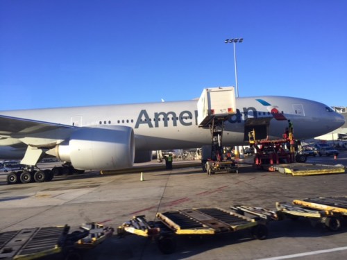 Scenes of aircraft ground operations while we were in transit from the international terminal to the domestic terminal includes this American Airlines jet replenishing on inflight meals.