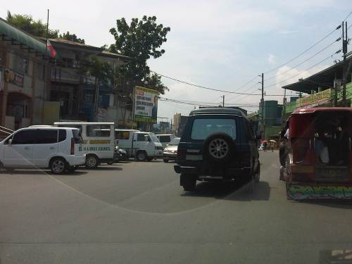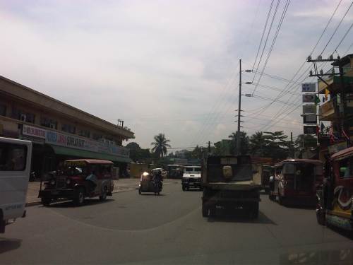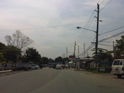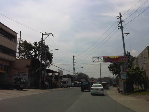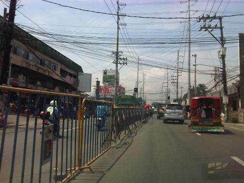There are also tricycles along the road due to the sidestreets and subdivision entrances connecting to the highway. Public utility tricycles are supposed to be prohibited from using national roads but are common in most provincial areas and CBDs where they are the main mode of transport. In this case, tricycles should be prohibited from using the highway as they are already competing with jeepneys, serving larger areas aside from what should be individual subdivisions or residential districts.