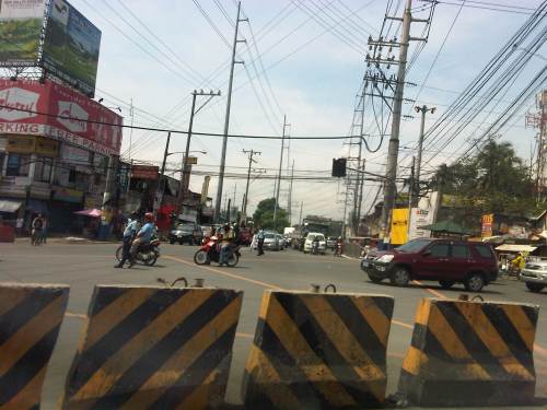 Barriers forcing all traffic to turn right to Marcos Highway – seen across is the approach of Sumulong Highway from Antipolo