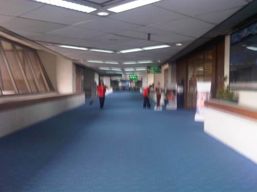 Corridor leading to the pre-departure area and gates at one wing of the terminal – the carpets seem tidy enough and airport staff may be found cleaning the area near one of the airline lounges.