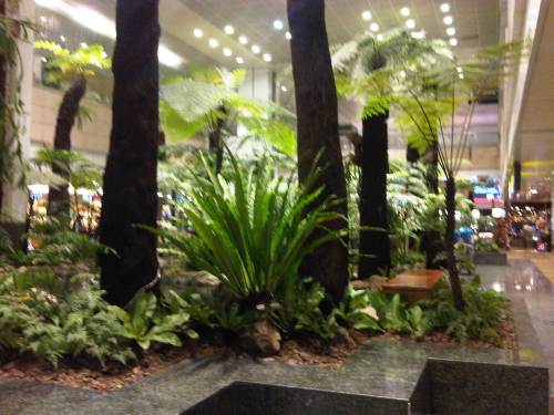 Ferns and palm trees in the middle of the airport