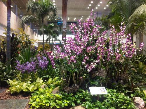 Orchids of different colors help make the terminal “alive” and perhaps contribute to a more relaxed and pleasing environment indoors.
