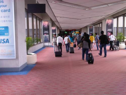 The corridors are spacious enough and the walk is not so long to require moving walkways or “walkalators.” There are staff and equipment at the end of the corridor scanning for indications of high body temperature usually associated with flu.