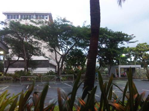 Gate and fence separating the tarmac from the VIP parking area just behind the cafe at the international wing of NAIA Terminal 2 – I was actually taking a photo of the windblown coconut trees and the dark clouds generated by a slow-moving typhoon Gener.