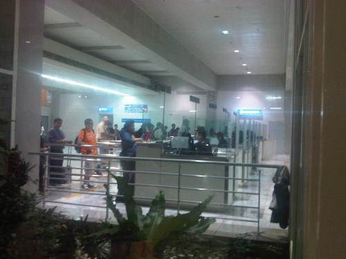 People could see passengers lining up at the immigration counters from the waiting area outside the terminal