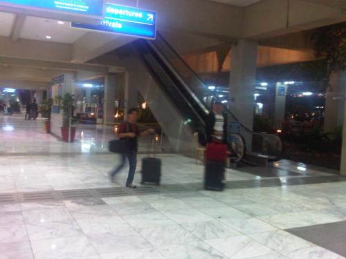 Passengers transferring to the departure level can take the escalator shown in the photo. The escalator, however, seems to be always under maintenance and unavailable. There is another on the other end of the International Wing of the terminal.